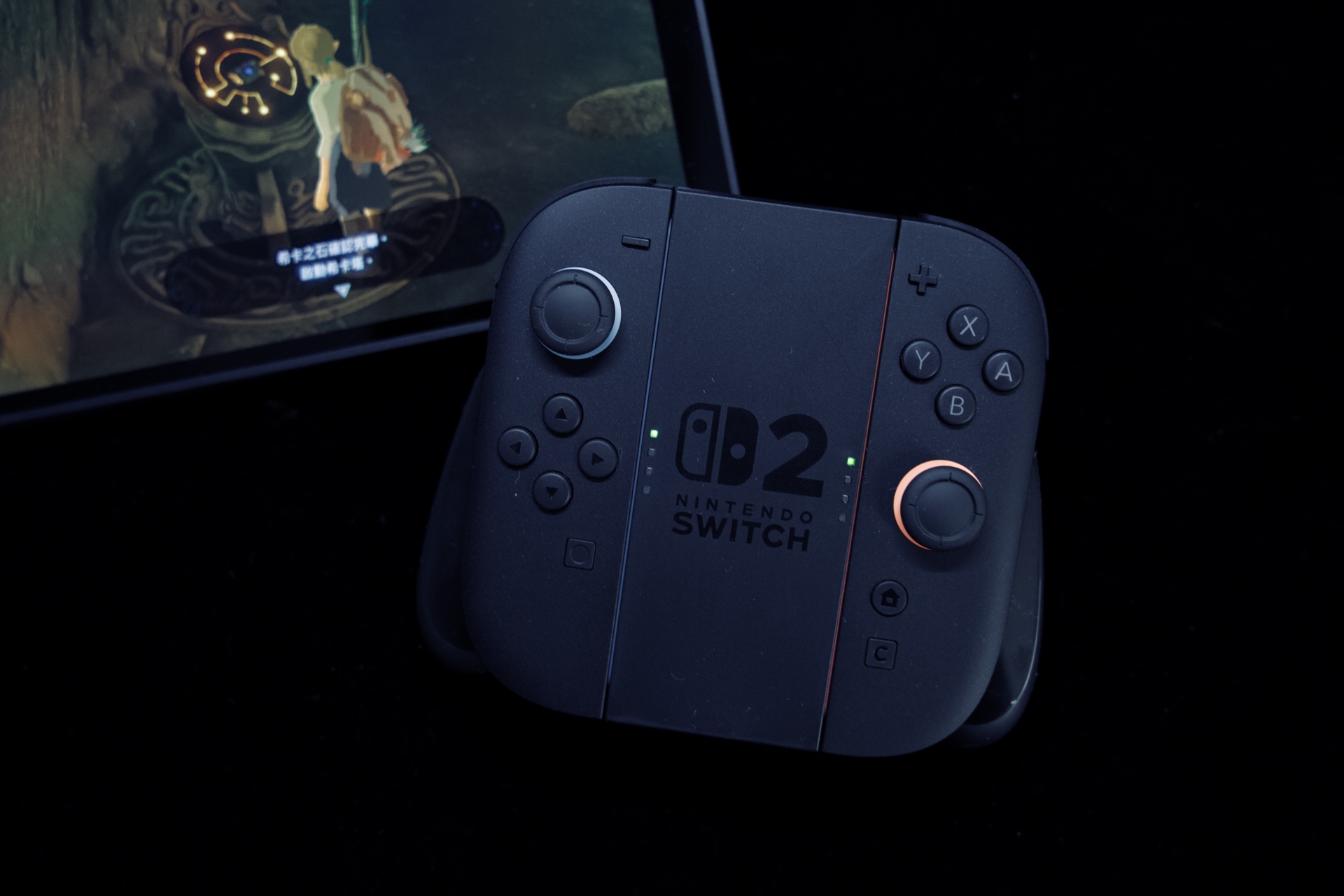 整機尺寸、厚度與重量仍控制在一個優秀的區間,握持遊玩兩小時完全不是問題。但扁扁的 JoyCon 2 在手掌部分缺乏支撐跟 NS1 是一樣的毛病,只能說是體積上的必然取捨,要提升握持手感得依第三方配件才行。